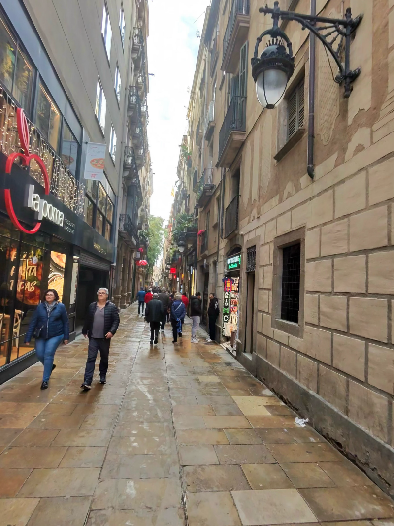 Von dort aus ging es weiter zu Fuß Richtung Hard Rock Café. Der Weg dorthin führte durch kleinere Seitenstraßen, die den eigentlichen Zauber der Stadt ausmachen. Enge Gassen, alte Fassaden mit schmiedeeisernen Balkonen, dazwischen moderne Läden und kleine Bars. In Vierteln wie dem Barri Gòtic oder El Born fühlt sich Barcelona fast zeitlos an: mittelalterliche Strukturen treffen auf modernes Leben, Wäsche hängt zwischen den Häusern, Mopeds schlängeln sich durch Straßen, die eher für Pferdekarren gedacht waren.
