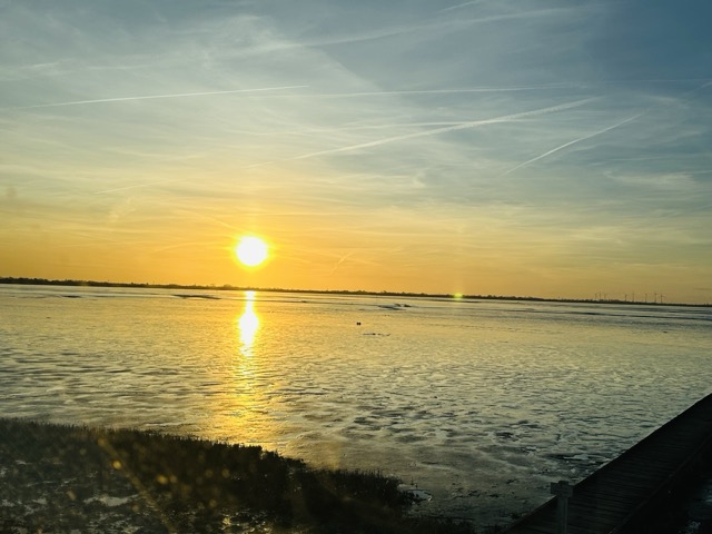 Das absolute Highlight war jedoch das Naturschauspiel von Ebbe und Flut. Mehrmals täglich verwandelte sich die Landschaft komplett: Mal zog sich das Wasser weit zurück und gab das Watt frei, dann wieder füllte sich alles langsam und kraftvoll. Dieses Wechselspiel live vom Stellplatz aus zu beobachten, hatte etwas Meditatives und zugleich Faszinierendes.