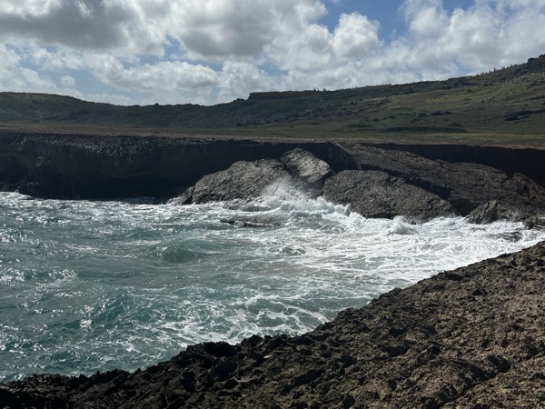 Weiter ging es mitten über die Insel Richtung Natural Bridge/Baby Bridge, entlang der wilden Nord-Ost-Küste Arubas. Bei der Brücke konnten wir die wirklich wilde Küste erkunden und atemberaubende Wellen beobachten.