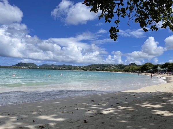 Es ging zurück Richtung Rosseau mit dem Ziel Vigie Beach. Hier konnten wir 2 Stunden schwimmen und die tollen Strand geniesen. Der Vigie Beach ist einer der bekanntesten Strände auf der Insel und zeichnet sich durch feinen goldenen Sand und klares, türkisfarbenes Wasser aus.
