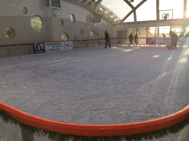 Der erste Eindruck war schon überwältigend, die große Eingangshalle. Kabine 14106 war schon fertig und freigegeben, so ging es direkt dorthin. Anschließend wurde dass Schiff erkundet. Das neue Vergnügen: Eine Schlittschuhlaufbahn und ein Hochseilgarten.