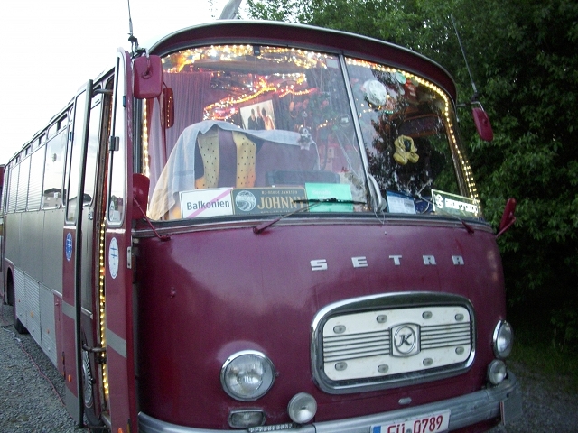 Wir waren eine super lustige Truppe und haben das gesamte Wochenende nur Spaß gehabt. Alles super liebe und nette Menschen. Der Platz ist sehr großzügig und wir können alle unsere Wohnmobile stellen, wie wir es möchten (auf der Wiese). Der Platzwart Thomas ist total freundlich und hilfsbereit. Zur selben Zeit war ein Treffen von Wohn-Bussen. Wir hatten das Glück und konnten uns diese Fahrzeuge von der Nähe anschauen und teilweise auch von innen. Das Wohnmobil von Johnny. Sein Wohnbus und er selber sind absolut einmalig auf dieser Welt. Lichterketten und Stromleitungen wohin man schaut.