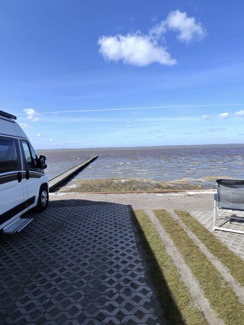Das absolute Highlight war jedoch das Naturschauspiel von Ebbe und Flut. Mehrmals täglich verwandelte sich die Landschaft komplett: Mal zog sich das Wasser weit zurück und gab das Watt frei, dann wieder füllte sich alles langsam und kraftvoll. Dieses Wechselspiel live vom Stellplatz aus zu beobachten, hatte etwas Meditatives und zugleich Faszinierendes.